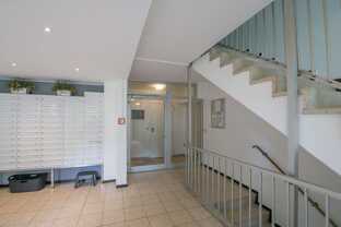Sie liegt in einem größeren (35 WE), aber sehr gepfegten MFH. Zur Wohnung gelangt man über einen Aufzug, der von der Tiefgarage direkt bis zur Wohnungsetage fährt.